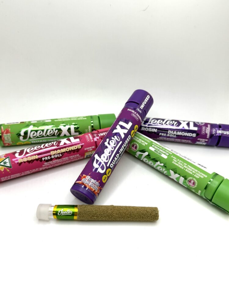 | Jeeter XL Flavors | Bubba G-Indica, Double Rainbow-Indica, Granddaddy Purp-Indica, Guava Burst-Hybrid, Prickly Pear-Indica, Watermelon ZKZ-Indica |