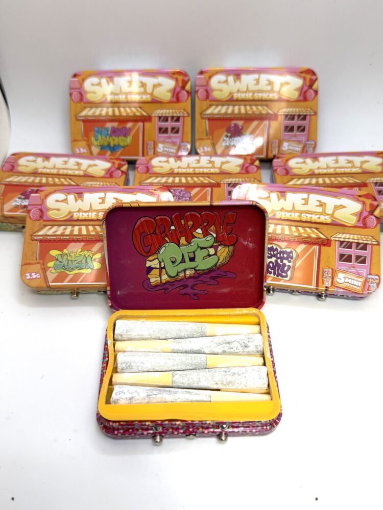 | Sweetz Pre-Roll Flavors | 4k Zkittlez, Black Sherbert, Blue Candy Lemonz, Cotton Candlez, Fruit Rollupz, Grape Jelly, Grapple Pie, Pazookie, Smarties, Yuzu |